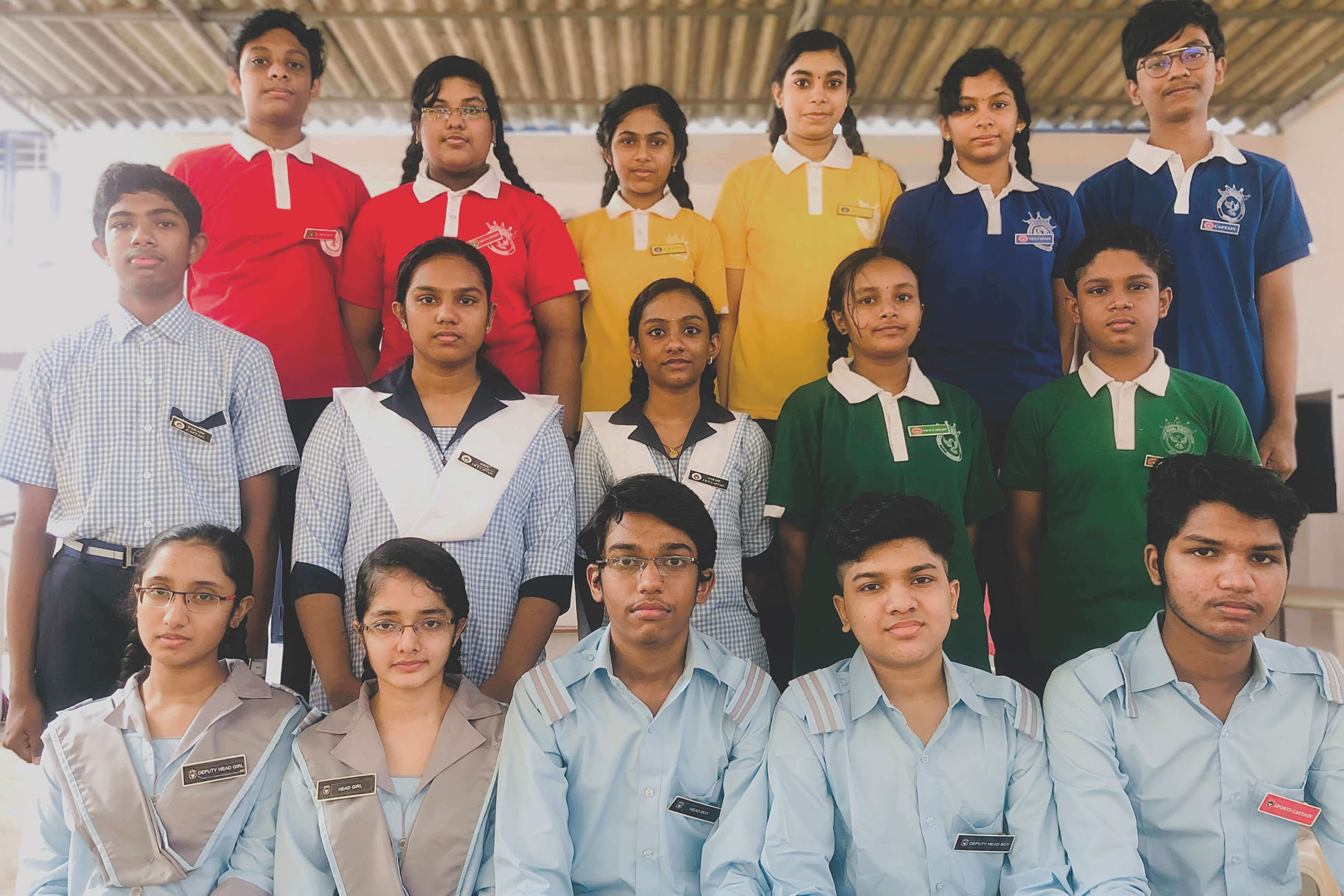 The students from classes I to XII are divided into four houses named Red House, Blue House, Green House and Yellow House. Each house is led by a House Captain and a Vice Captain along with two teachers as House Wardens. Each house has a unique dress code to meet the decorum of the house events. A healthy house wise competition helps the students to step up their outlook towards their life.
